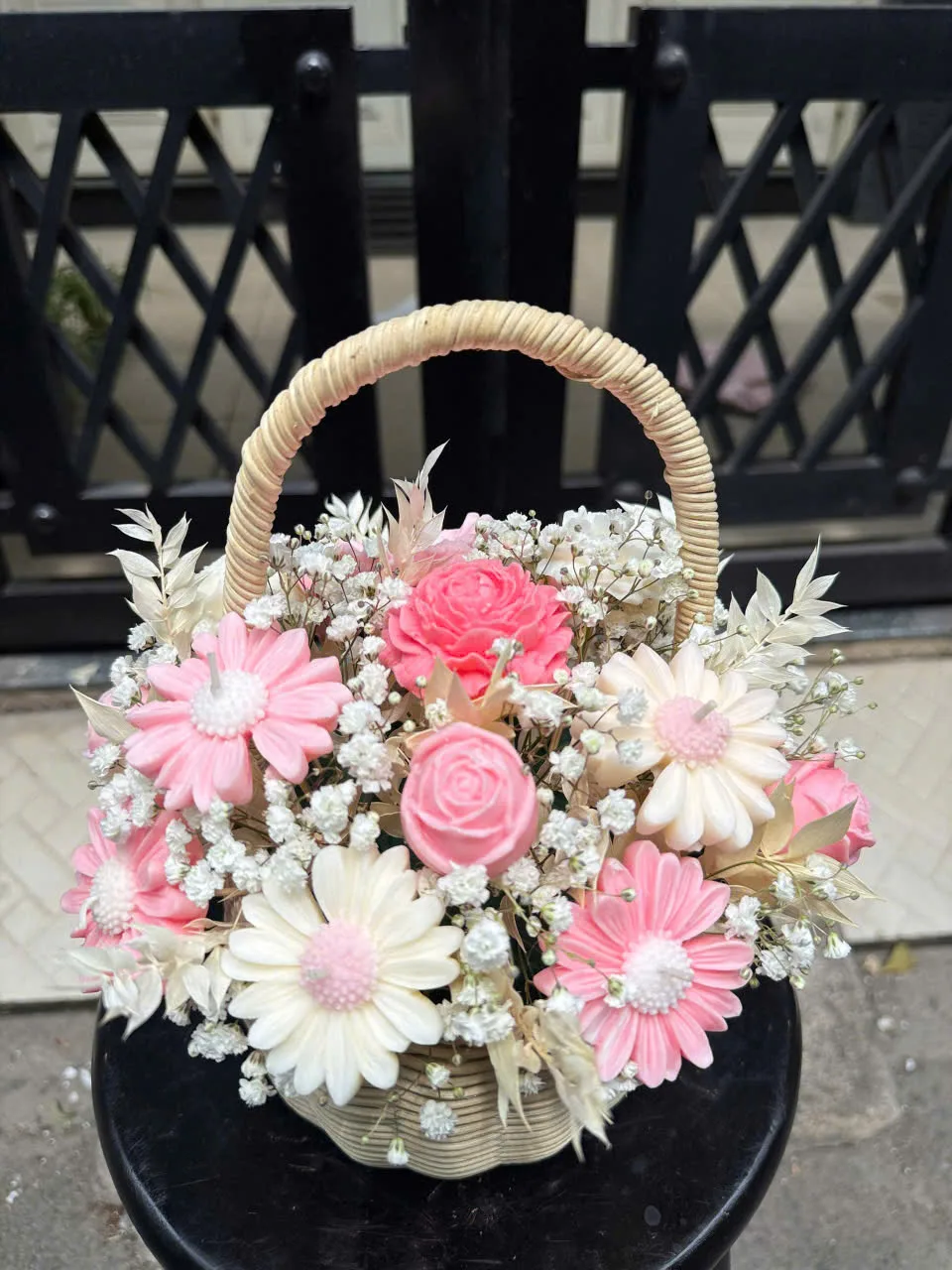 Giỏ hoa nến thơm handmade tone hồng pastel nhẹ nhàng, thiết kế tinh tế với hoa nến tạo hình chân thật. Vừa dùng để trang trí, vừa tỏa hương thư giãn – món quà độc đáo và ý nghĩa cho mọi dịp.